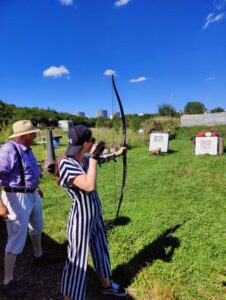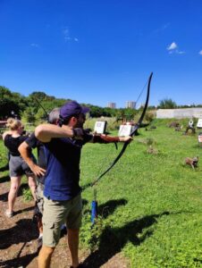 Afterwards, on a bright and scorching summer day, we headed to a Mannheim archery club to learn the art of archery. The sun was high in the sky when we arrived at the club. The heat was intense, but it didn’t dampen our enthusiasm. After a brief introduction to the world of archery, covering everything from the history of the longbow to the fundamentals of shooting technique, we were finally able to string our own bows. The longbow, a tool renowned for centuries for its precision and simplicity, also presented a challenge for us: each arrow demanded concentration, calmness, and clean technique. Even a small mistake, like releasing the bowstring incorrectly, could result in a missed shot. Just like a good analysis, a good shot requires a blend of intuition and technique.