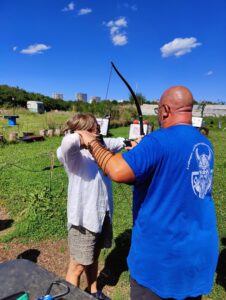 Danach machten wir uns an einem strahlend heißen Sommertag auf den Weg zu einem Mannheimer Bogenschieß-Verein, um die Kunst des Bogenschießens zu erlernen.